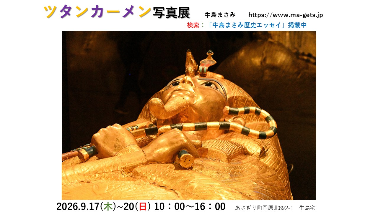| 2026/02/11 | 予告【ツタンカーメン】写真展 2026年9月17-20日予定 |