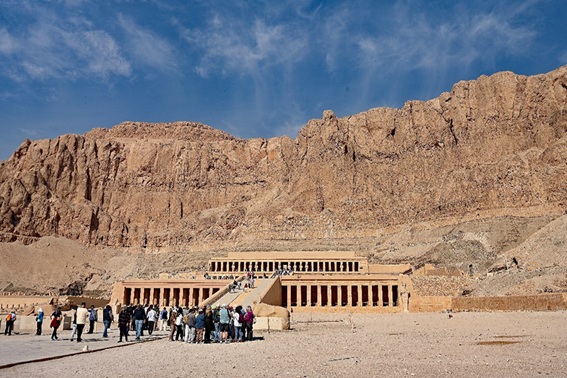 「ハトシェプスト葬祭殿」は、ルクソール西岸にあり、デル・エル・バハリ(アラビア語で「北の修道院」の意)と呼ばれる湾型の断崖に沿って建てられている。第18王朝の女性ファラオ、ハトシェプストの側近であった建築家センムトの設計によるとされている。